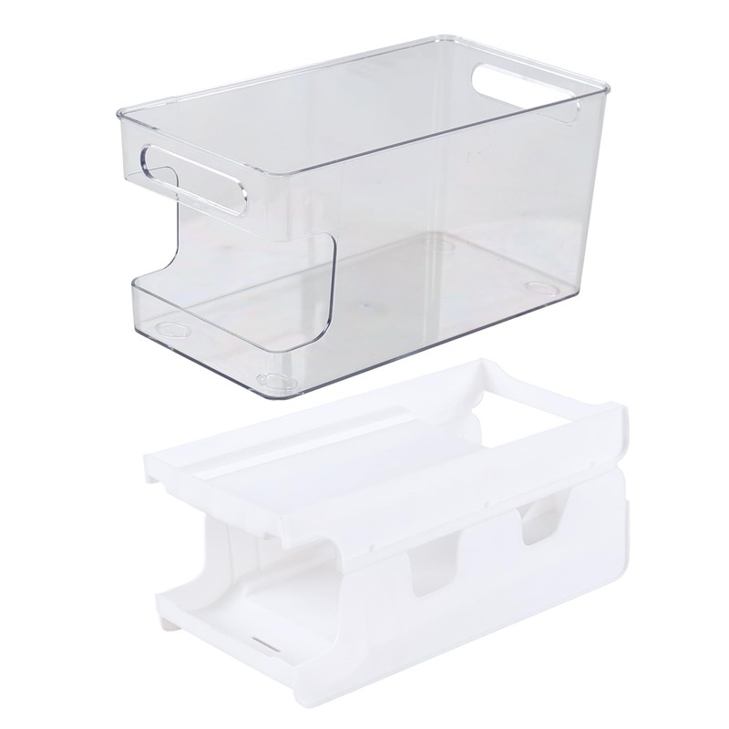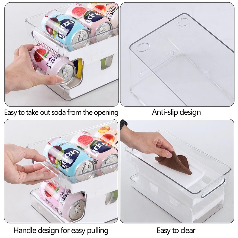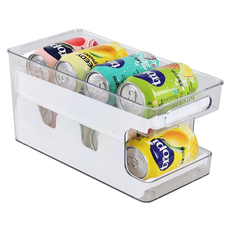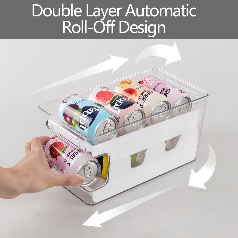 Waikhomes 2-lagiger transparenter Kühlschrank-Getränke-Organizer, Dose, rollender Getränke-Organizer