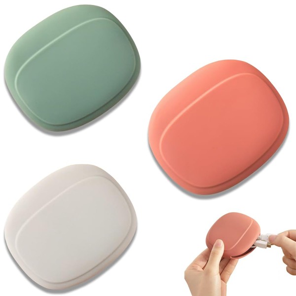 WAIRUIGOOD 有線イヤホンケース イヤホンケース イヤホン収納 シリコンポーチ 耳栓ケース 小物収納 キーケース USB 充電ケーブル イヤホン 充電器 旅行用 ポータブル 3個セット(グリーン ピンク グレー)