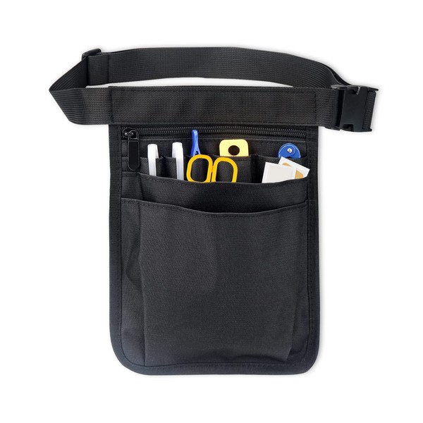 Waist Pouch, Apron Bag, Nurse Pouch, Adjustable, Belt, Lightweight, Waterproof, Multi-functional Pockets, Nursing, Work, Black, Black