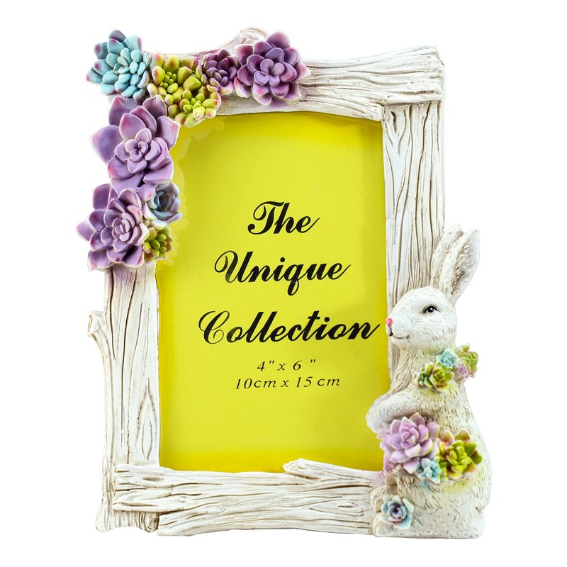 WAIT FLY 4 X 6 Inch Bunny and Succulent Resin Card Photo Frame Picture Frame for Desktop Table
