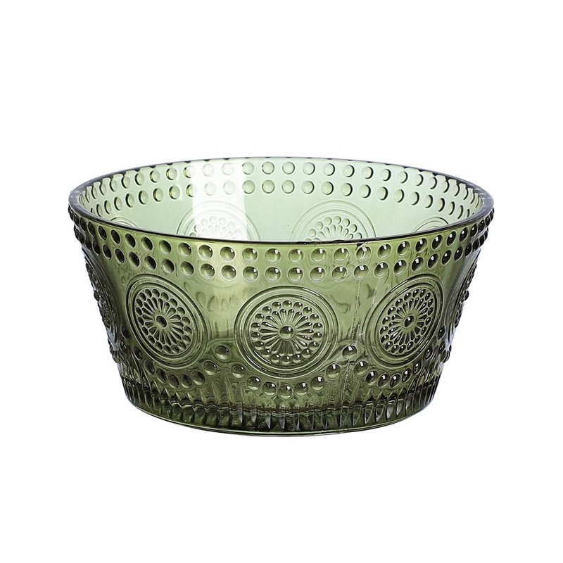 WAIT FLY Embossed Sunflower Glass Bowl Salad Bowl Candy Dish, 11 OZ-Green
