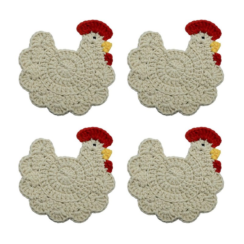 WAIT FLY Handmade Crochet Coasters Cute Chicken Drink Coaster Set for Coffee Table Tabletop Protection Home Decor