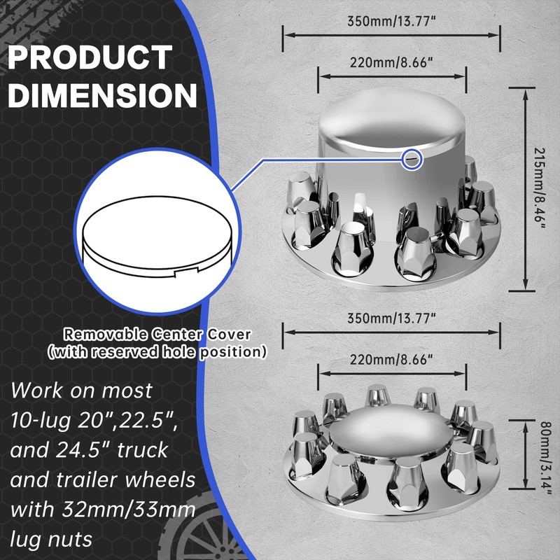 - Anti-Rust & Anti-Corrosion: Our Chrome Lug Nut Covers for Semi Trucks can adapt well to various climate conditions, protect your nuts from rust and corrosion, also can help extend the life of your nuts and prevent costly repairs.