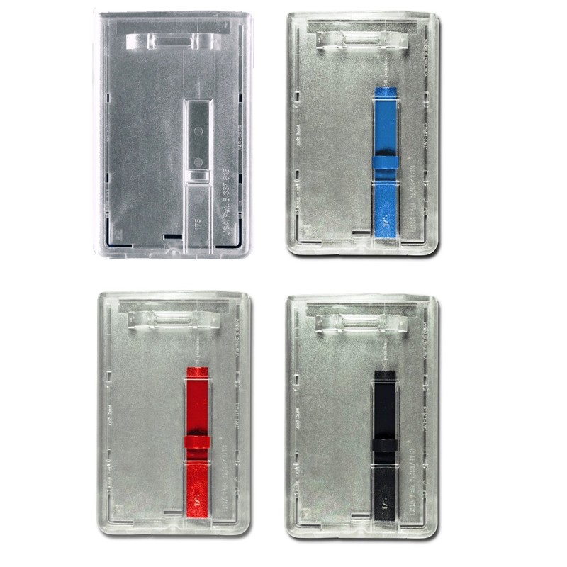 - ID holder: vertical with a slider for convenient removal of cards, suitable for cards in the size 54 x 86 mm (credit card size CR80)