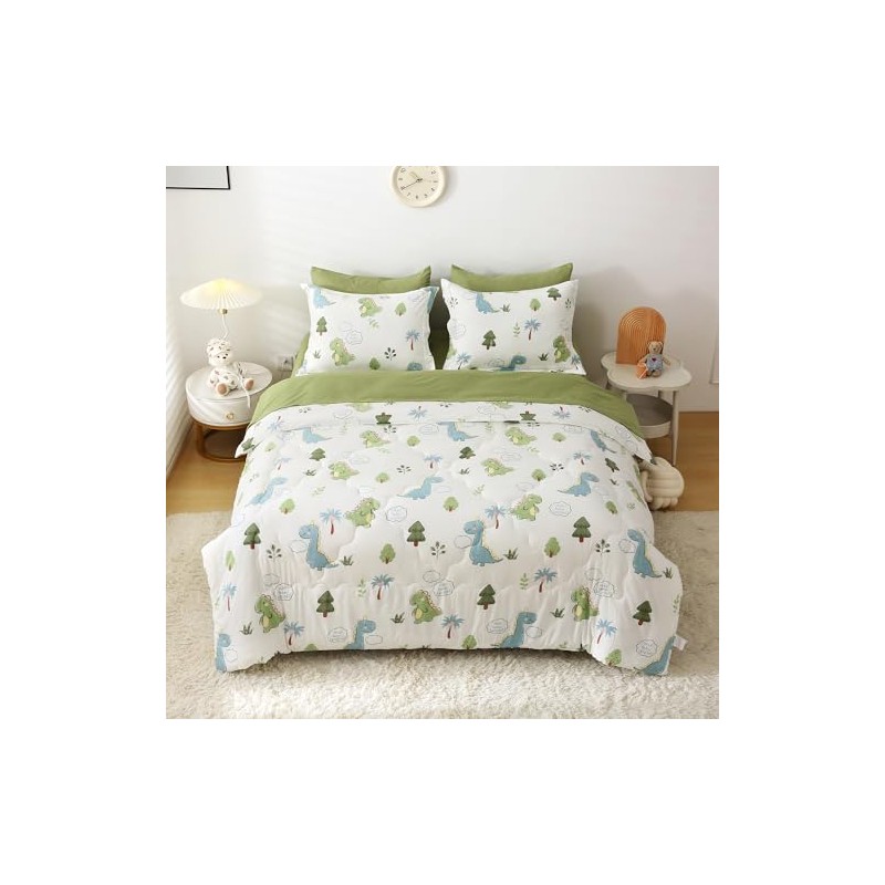 Wajade Kids Dinosaurs Comforter Set Bed in A Bag Twin Size 7 Piece Cute Green...