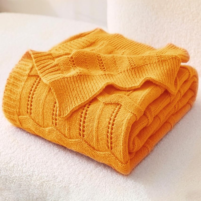 Wajade Knit Throw Lightweight Knitted Blanket for Sofa & Bed Breathable Non-Fluffy Knit Design with Ripple Texture All Seasons Home Decor(Yellow 130 * 170)