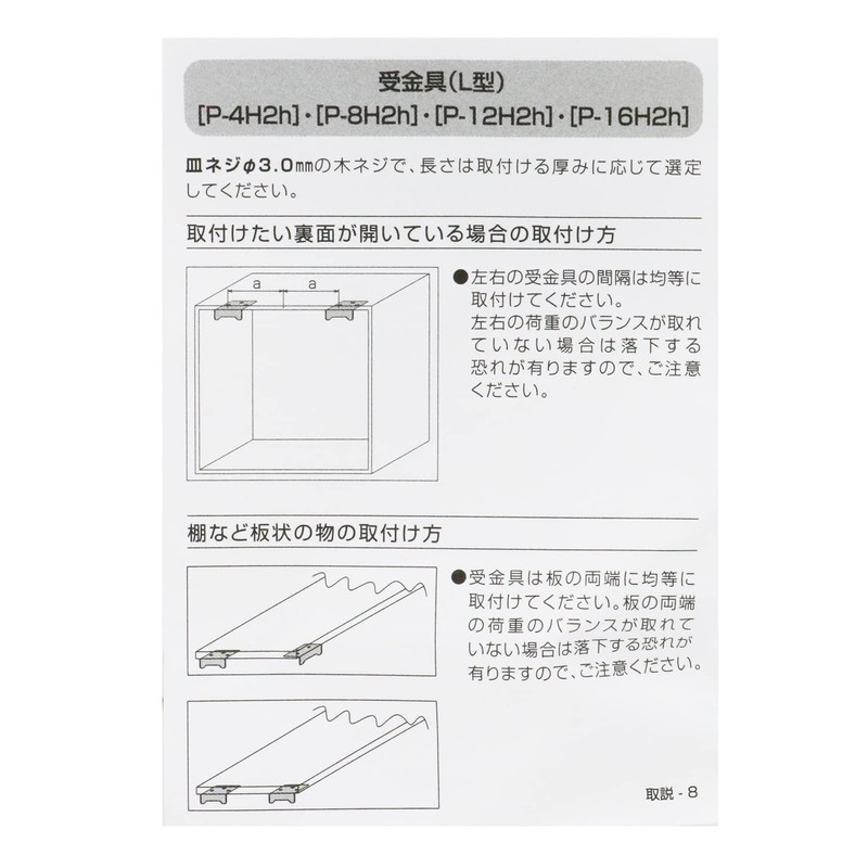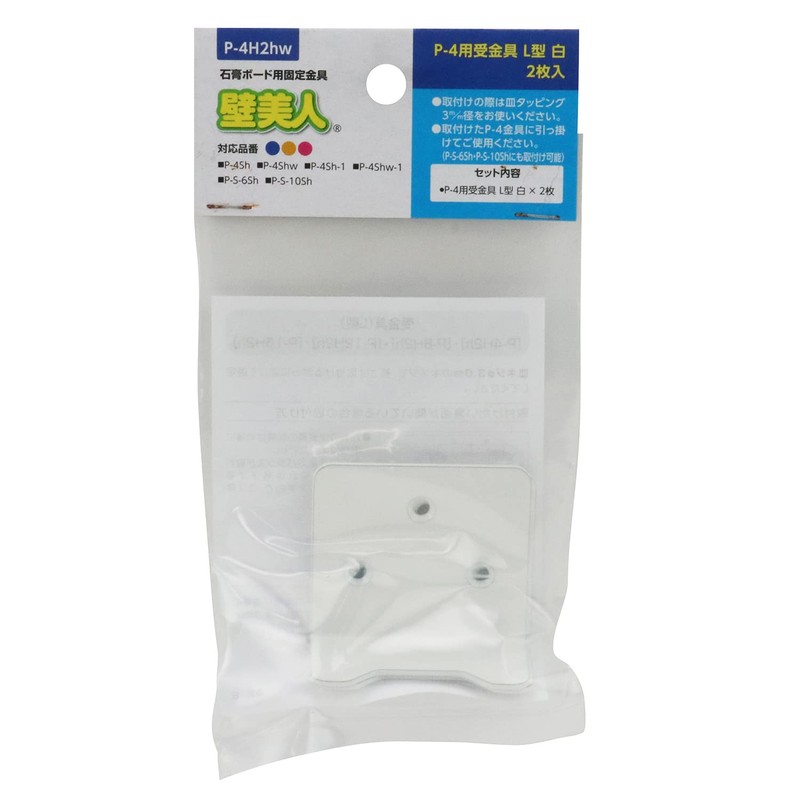 Wakabayashi Seisakusho P-4H2hw Wall Bijin P-4 Reception Hardware L-Shaped, White, 2 Pieces