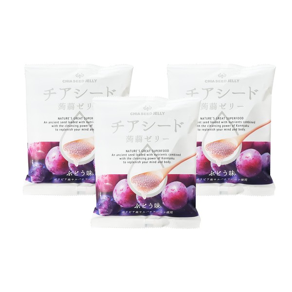 - Chia-seeded konnyaku jelly with grape flavor has been carefully selected for its ingredients.