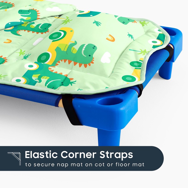 4 elastic corner straps to secure the nap mat to a daycare or preschool cot.