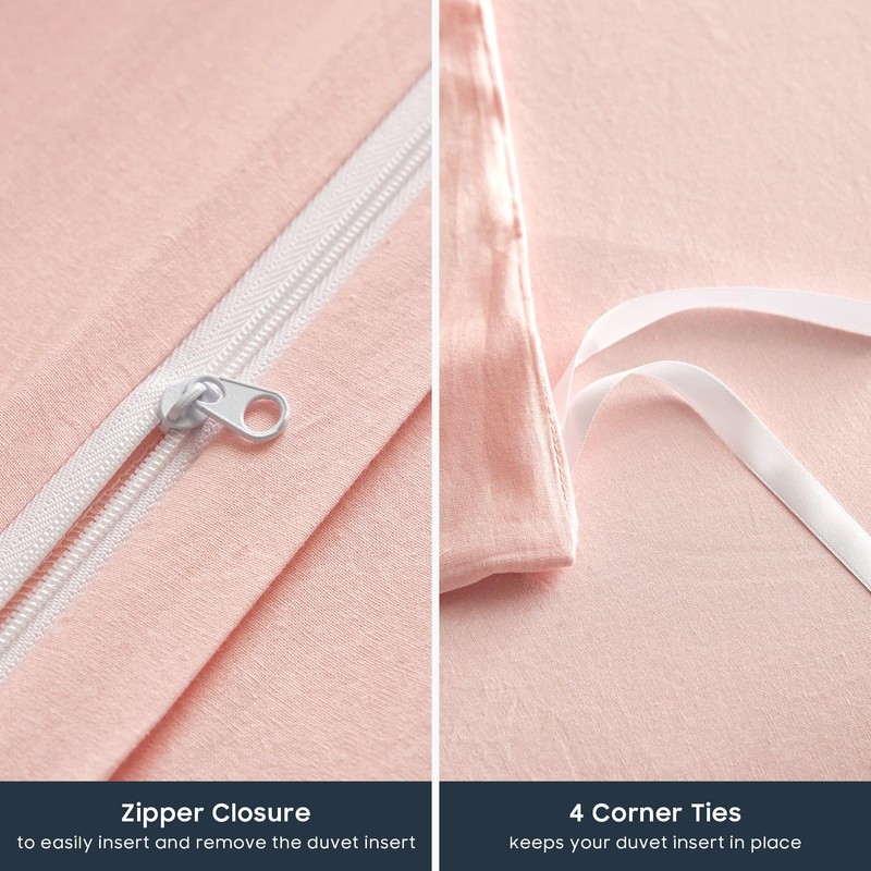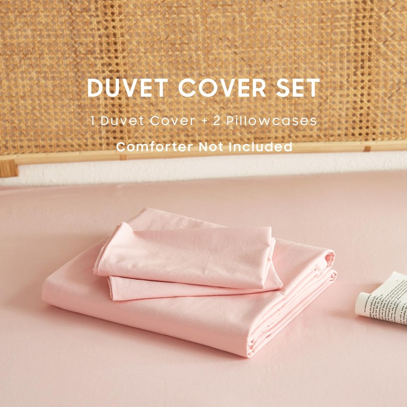 Wake In Cloud - Cotton Duvet Cover Set, Queen Size, Light Blush Pink, 100% Wa...