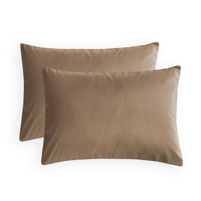 Wake In Cloud - Pair of Standard Pillowcases, 1000TC Ultra Soft Microfiber Pillow Covers, Mocha Brown, Standard Size 48x74 cm