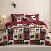 Wake In Cloud - Rustic Comforter Set with Sheets, Cabin Lodge Christmas Bear Moose Deer Wildlife Western Patchwork Country, 7 Pieces Bed in a Bag, Burgundy Black, King Size