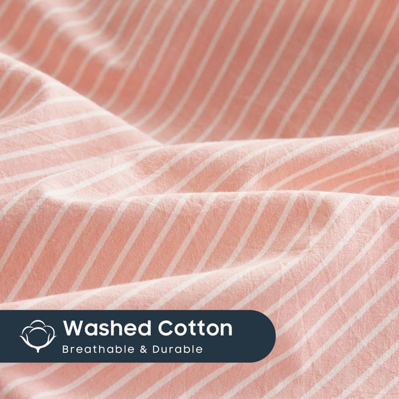 Wake In Cloud - Striped Cotton Duvet Cover Set, 100% Washed Cotton Textured P...