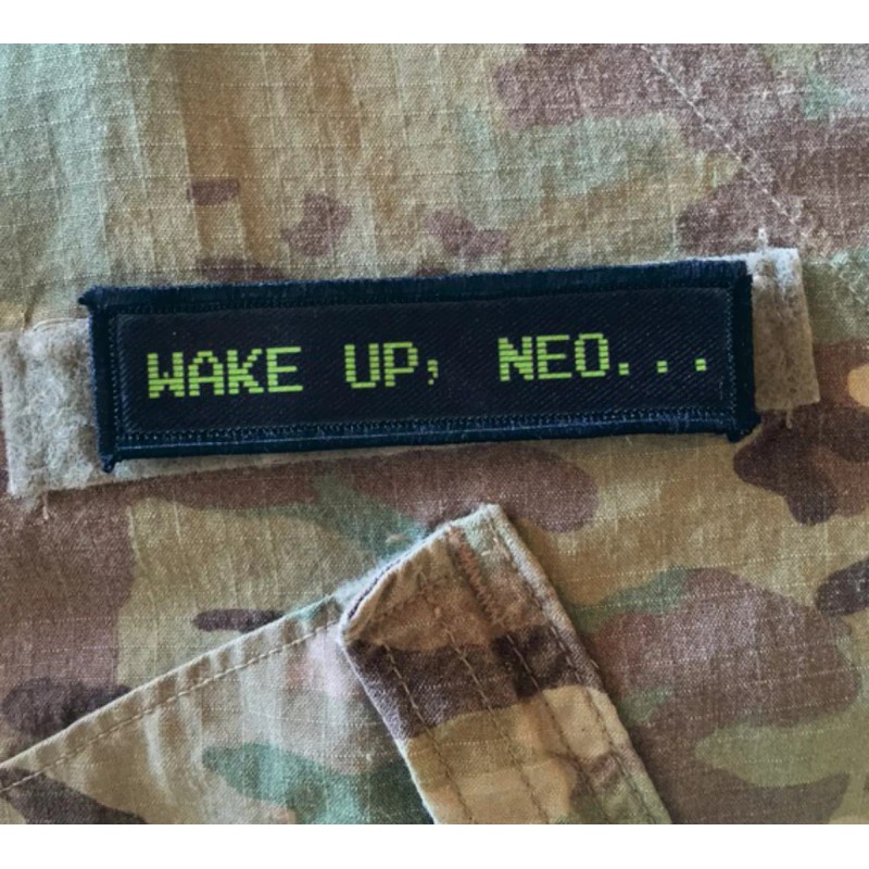 This listing is for the FIRST Patch Pictured: "Wake Up, Neo..." from The Matrix movie on a 2"x 3" Hook and Loop Patch! (standard morale patch size)