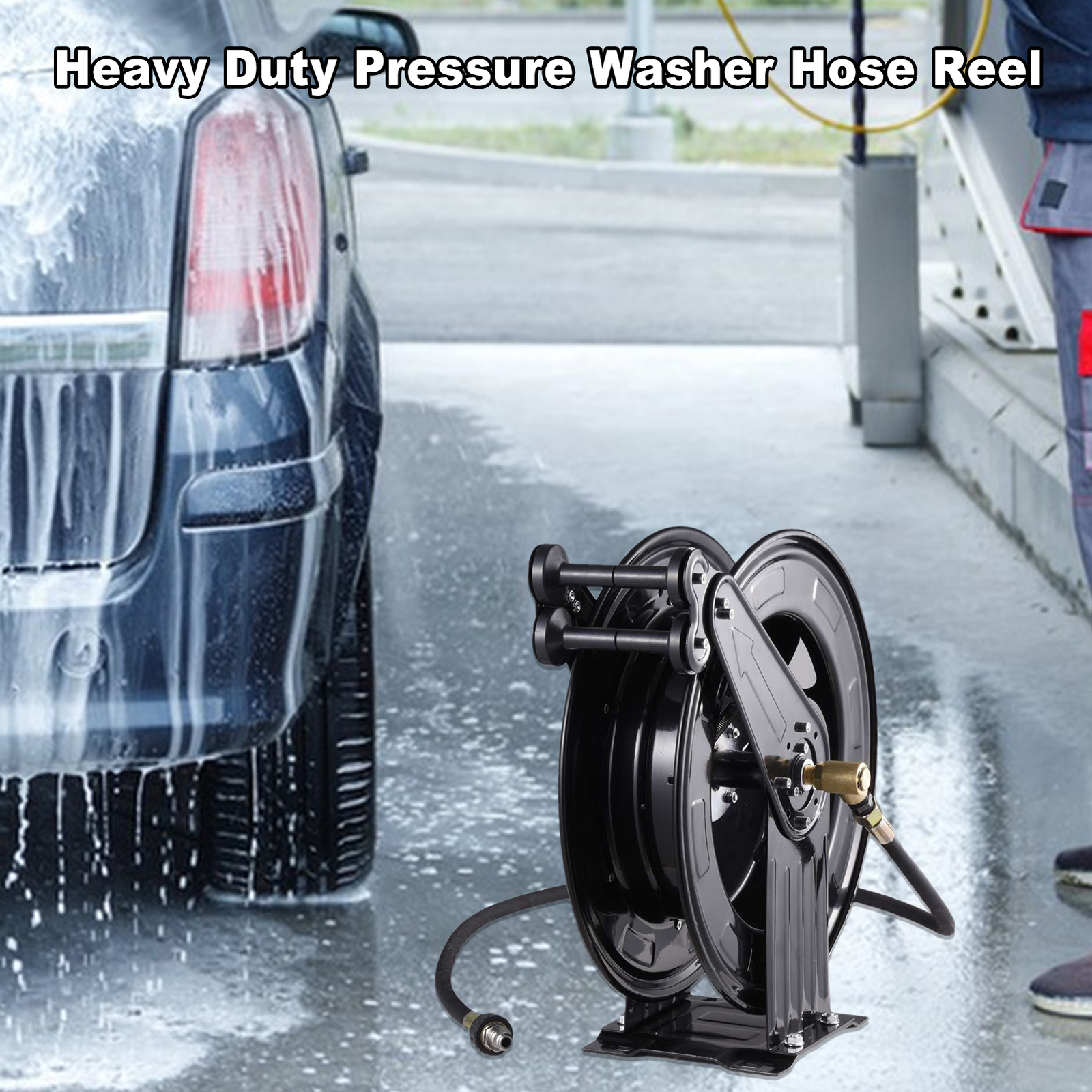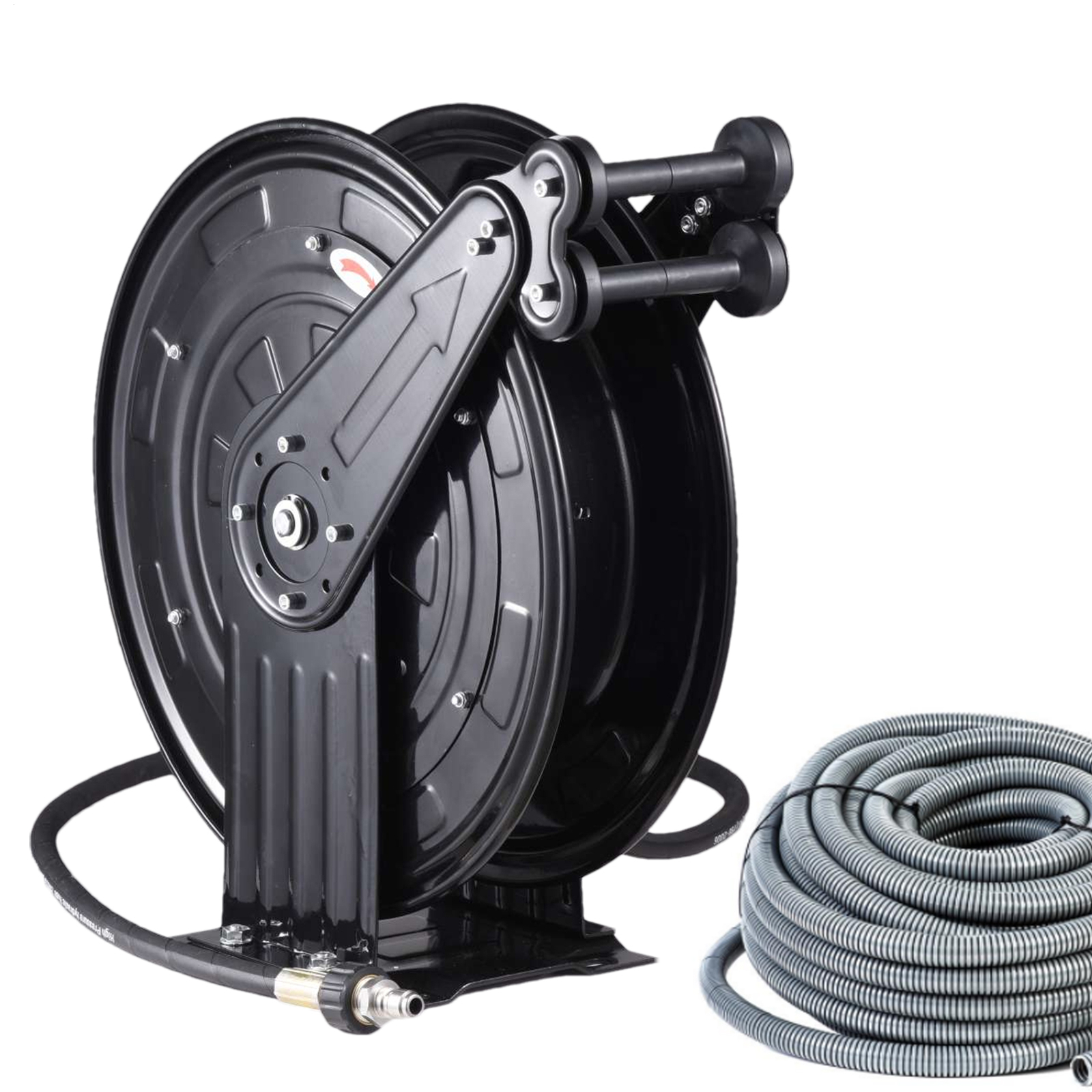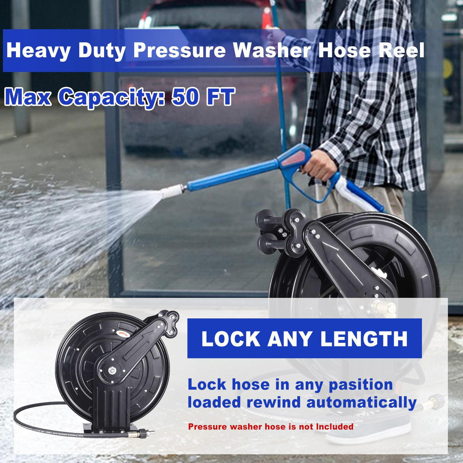 Innovative Solution: Our Washer Hose Reel presents an exclusive solution for your cleaning needs, with an automatic hose retraction system that eliminates tedious manual winding. Its unique design and retractable spring drive mechanism ensure effortless operation.