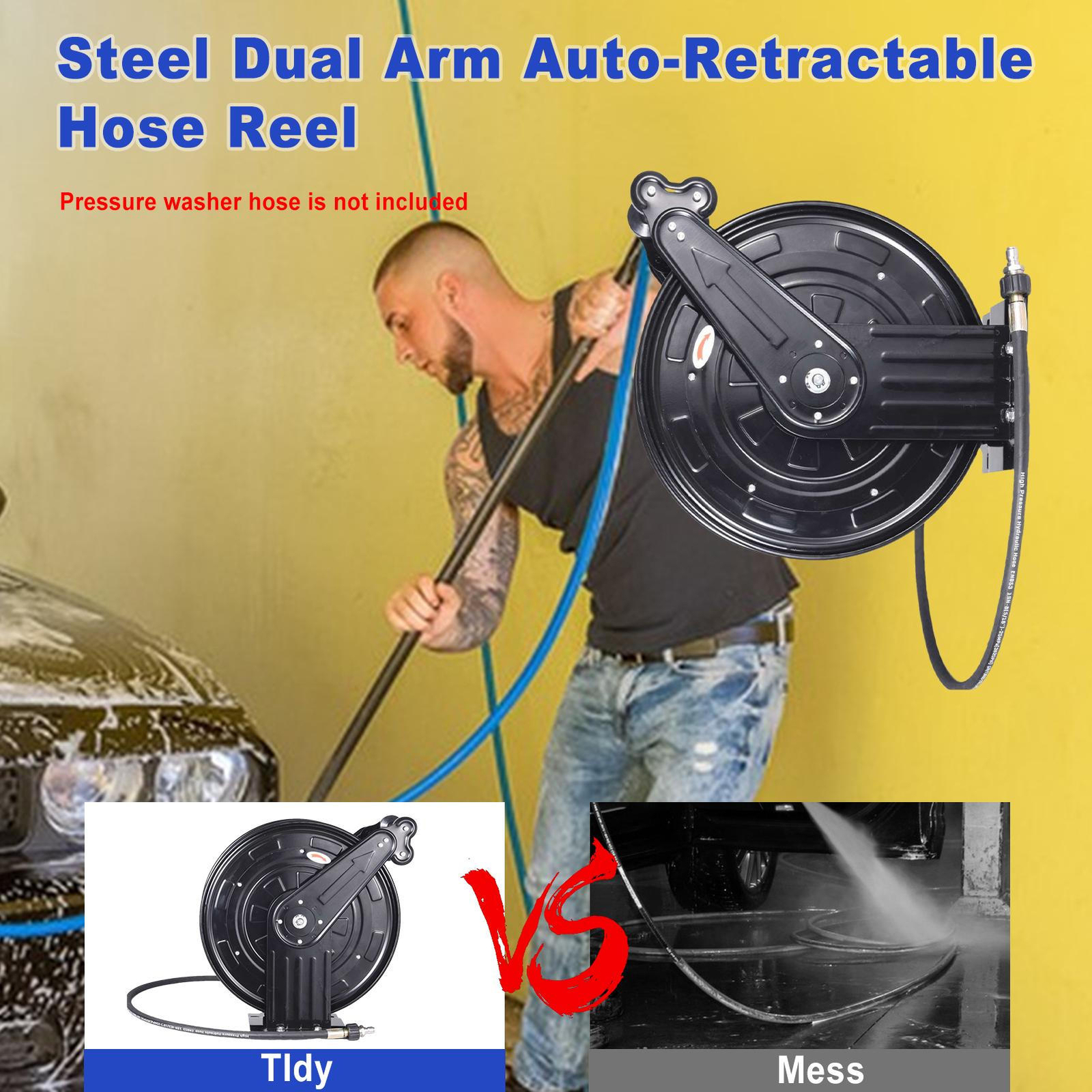 Wakfran Pressure Washer Hose Reel Duals Arm 3/8" X 50ft Auto Retractable Hose Reel US