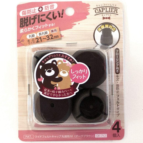 WAKI GK-712 Wide Felt Cap for Round Legs, Medium, Dark Brown, DB, 1 Leg