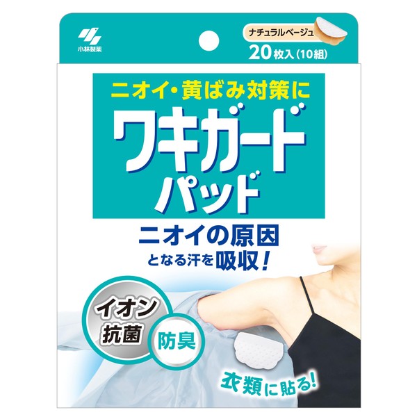 Waki Guard Pad, Odor and Yellowing Prevention, Armpit Sweat, Natural Beige, Ion Antibacterial, Deodorizing, Padding to Clothes, 20 Sheets