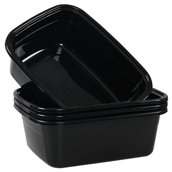 Wakikini 12 Quart Kitchen Plastic Wash Basins, Rectangular Dish Pans, 4 Packs, Black, 14.17" x 11.22" x 5.12"