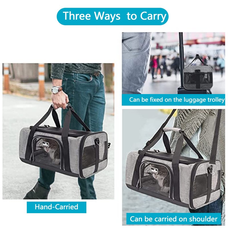 - 🐶【3 ENTRANCES & 5 SIDE VENTILATION】: The zippered design of the top, front and side entrances of the case makes it easy to put in and carry out your pet, making it faster and easier to remove your pet from pet carrier while traveling through security checks. 5 breathable mesh windows are designed to enhance visibility and ventilation, which can make them feel relaxed and calm.