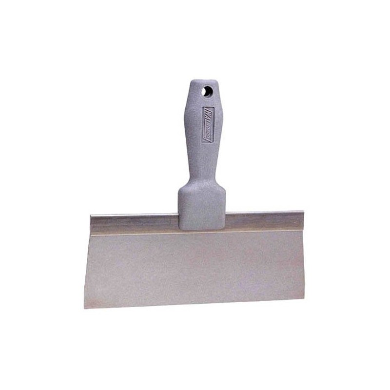 The Wallboard Yellow handle 8" Taping Knife features a textured molded finished handle for non-slipping and comfort. Also a stainless steel blade with long lasting memory-hardness - Does not rust. Generally, preferred by painters due to non-rust feature of stainless blade. Blade size is one application process in feathering of joint. General use of the taping knife is to apply a light coat of mud over joint utilizing paper or mesh tape.