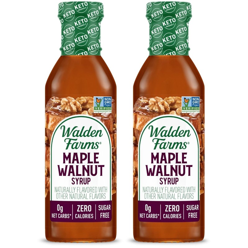 Walden Farms Maple Walnut Syrup – Perfect for Pancakes, Waffles, Desserts – Zero Calorie, Sugar-Free, Low Carb, Keto-Friendly, Gluten-Free, Vegan – 2-Pack, 12 oz Bottles