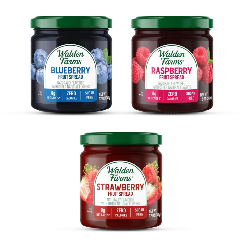 Walden Farms Fruit Spread Variety Pack Blueberry, Raspberry & Strawberry Fruit Flavors – Zero Calorie, Low Carb, Keto-Friendly, Vegan, Sugar-Free – 3-Pack, 12 oz Bottles