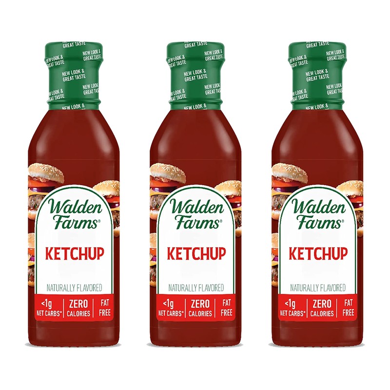 Walden Farms Ketchup 12 Oz. Bottle (Pack of 3) - Fresh & Delicious Salad Topping, 0g Net Carbs Condiment, Kosher Certified - Perfect for Fries, Burgers, Meatloaf, Pizza, Hotdogs and More