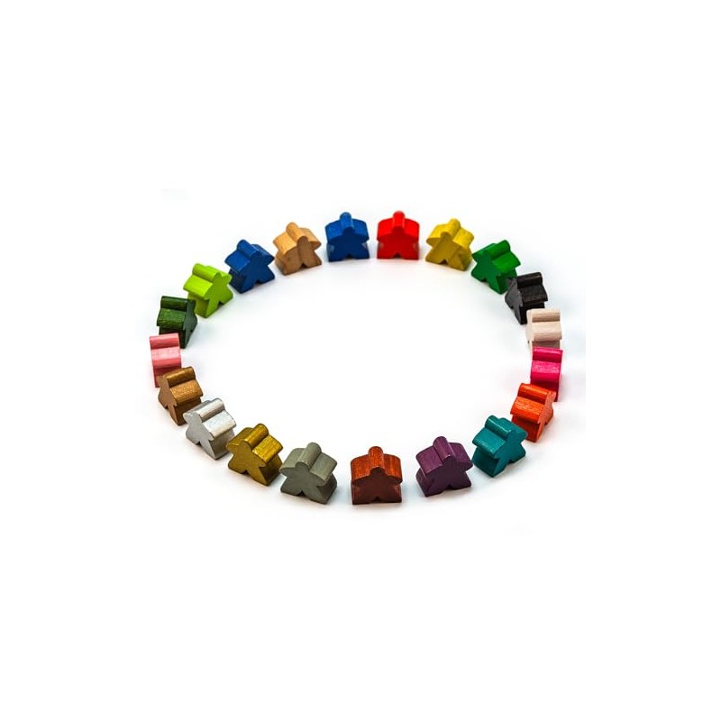The Meeple from Waldfelsen are handmade from real beech wood, sanded smoothly and then varnished. Unfinished natural figures are also available and can be painted yourself. Simply select the desired colour and the number of meeple from the menu. The Meeple have the classic size 16 x 16 x 10 mm and are suitable for many board games.
