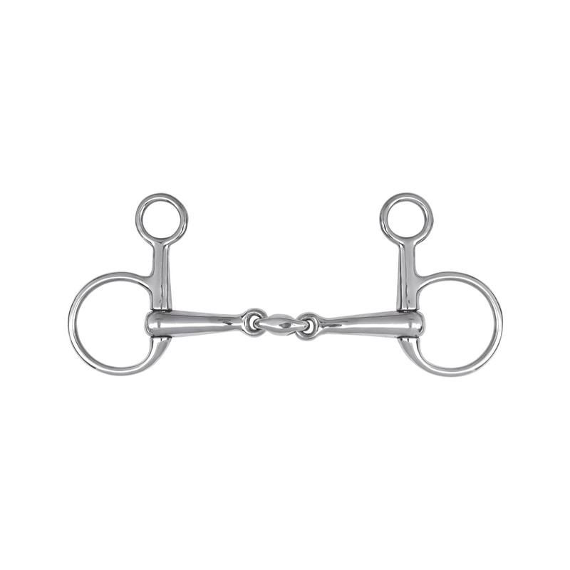 The Baucher Double Jointed Bit from Waldhausen is a high quality riding bit that provides both comfort and control for the horse. Made of durable stainless steel, it ensures a long service life and excellent corrosion resistance. An outstanding feature of this bit is the olive shaped intermediate piece that is placed between the two joints. This special shaping allows precise and even pressure distribution on the horse's tongue, resulting in pleasant and effective communication between rider and horse. With a thickness of 16 mm, the bit offers a reasonable size that is suitable for most horses. The double brokenness ensures even pressure distribution on the tongue and load, resulting in a gentle effect on the horse's mouth. This promotes a correct leaning and a clear understanding between rider and horse. The belly bit also has rings with a diameter of 5 cm. This size allows for stable attachment to the reins and ensures reliable signal transmission. The Baucher arrangement of the rings provides additional leverage, which reinforces the action of the bit and gives the horse precise steering and support.