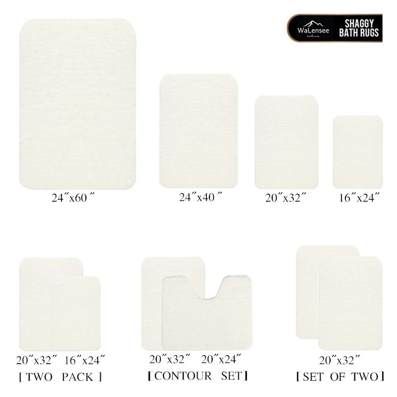 Walensee Shaggy 2 Piece Bath Rug Set, (20 x 32, 2 Pack Set, Ivory) Bathroom Rug Set Bath Mats for Bathroom Machine Wash/Dry Absorbent Bathroom Mats Set Non Slip Plush Rug Sets for Shower