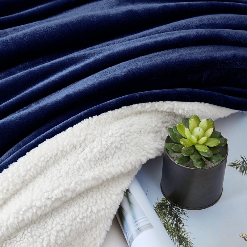 Walensee Sherpa Fleece Blanket (King Size 108”x90” Navy) Plush Throw Fuzzy Super Soft Reversible Microfiber Flannel Blankets for Couch, Bed, Sofa Ultra Luxurious Warm and Cozy for All Seasons