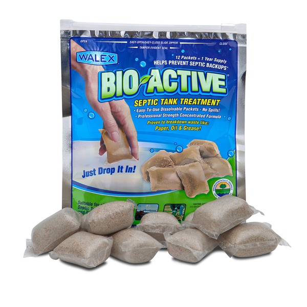 Walex BIO-31112 Bio-Active Drop-Ins Septic Additive, 12 Pack, 1 years supply, Multi-Color