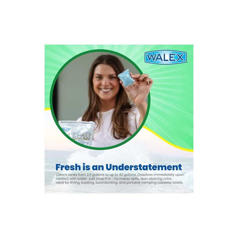 Upgrade your RV or boat with Walex Porta-Pak RV black holding tank deodorizer drop-ins. Take control of your tank, eliminate odors, and enjoy the outdoors to the fullest.