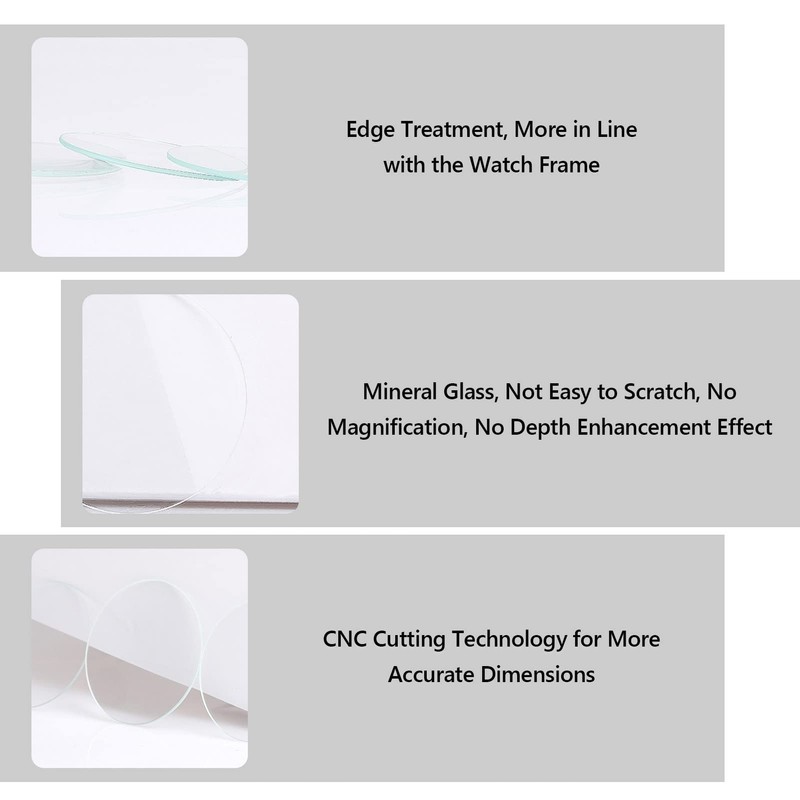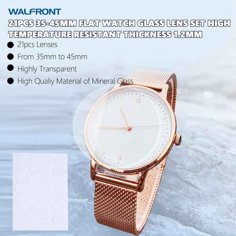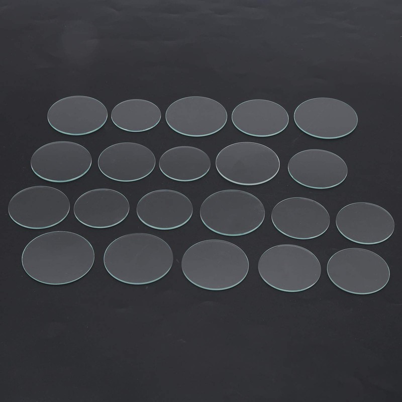 Walfront 21PCS 35‑45mm Glass Replacement Parts Flat Watch Crystal Lens Glass Watch Glass Parts Assortment