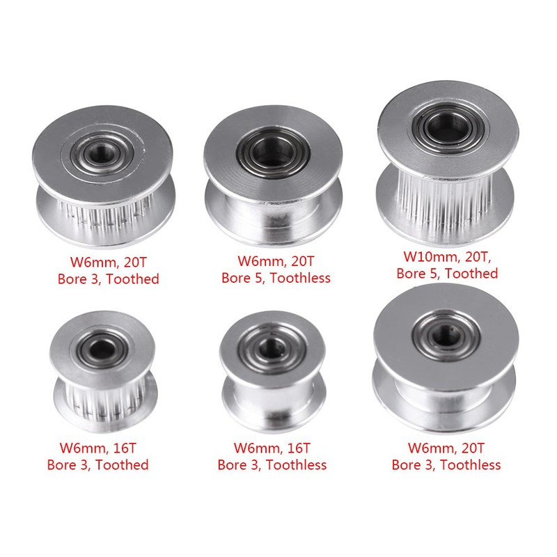 Walfront 3D Printer Accessories, Pack of 5 2GT Aluminium Timing Pulley, 3 mm / 5 mm Bore Wheel 16/20 Tooth or Toothless for Belt Width 6 mm / 10 mm (W6 mm, 20T, Bore 3, Toothed)