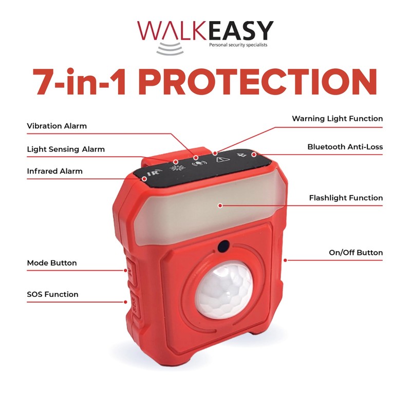 Walk Easy Protector 7 in 1 Multi Function Personal & Property Security Alarm | Motion | Bluetooth | Infrared | Vibration