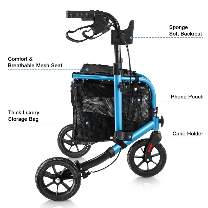 WALK MATE 3 Wheels Rollator Walker 260lb Seat Backrest 10Lb Lightweight Foldable