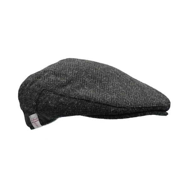 WALKER AND HAWKES Oakmoor Harris Tweed Country Style Flat Cap, Gunmetal