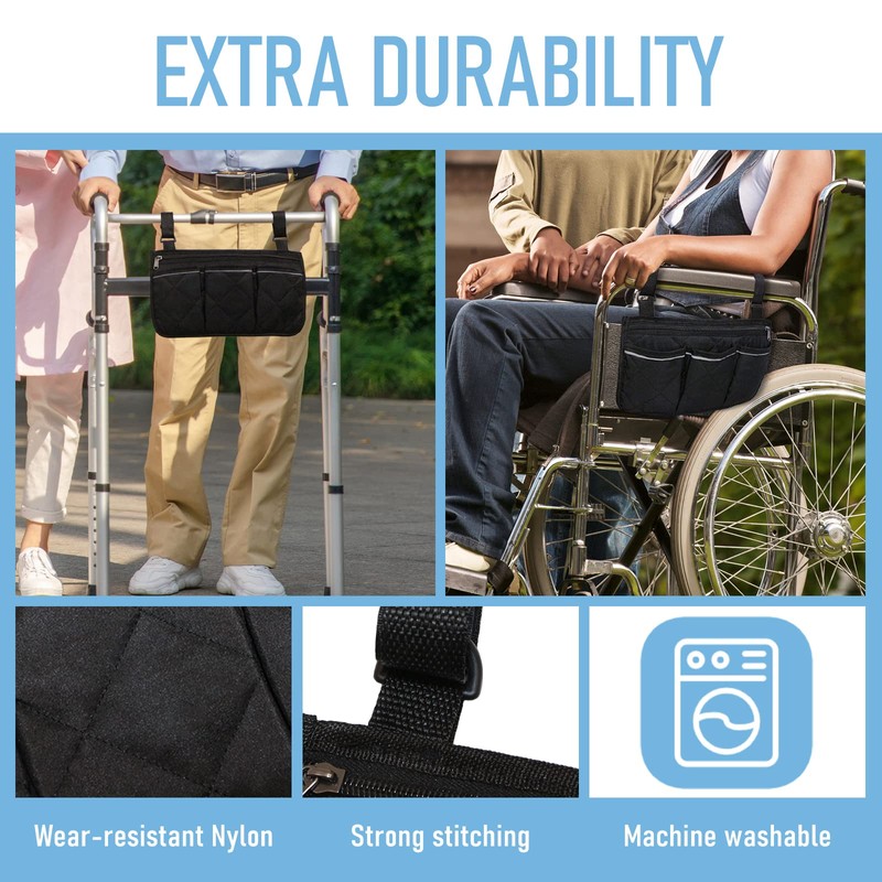 - Durable - Featuring quality nylon, PP cotton interlayer and strong stitching diamond quilting, our walker bags are more wear-resistant, waterproof, deformation resistant and snagging proof, compared to similar products with net bags.