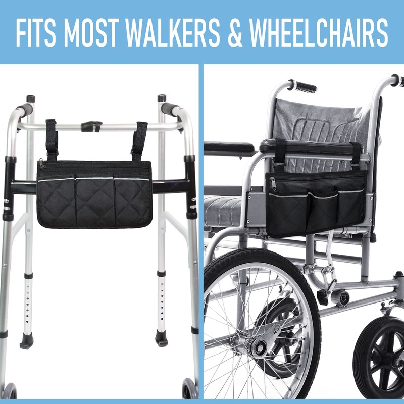 - Fits Most Walkers & Wheelchairs - With two adjustable Velcro straps, thewalker bags for folding walker can be easily attached to different types of walkers, rollators or wheelchairs.