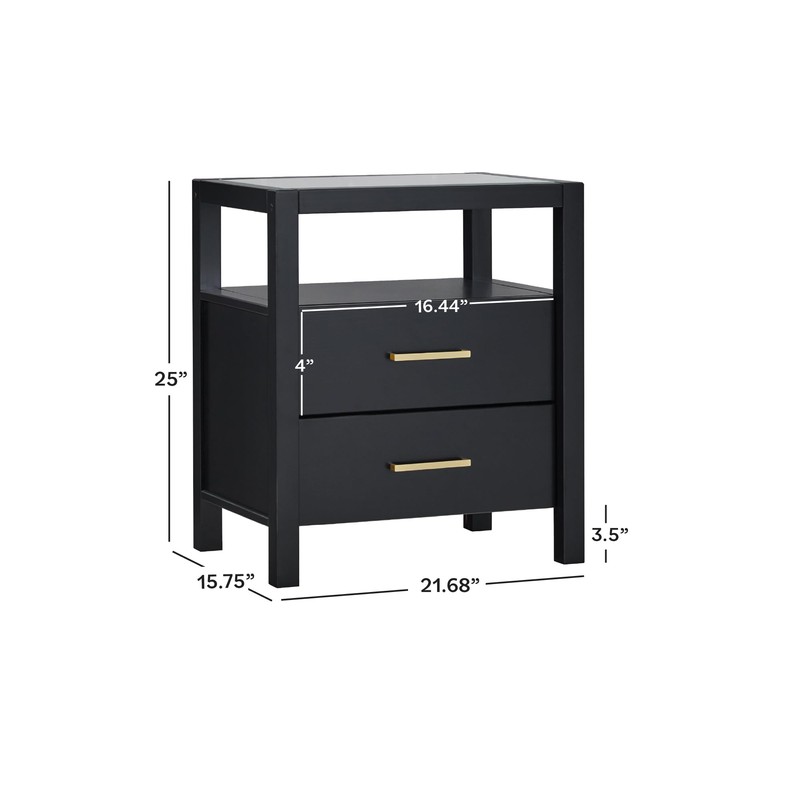 Walker Edison Isla Modern Solid Wood 2 Drawer Nightstand Side Table with Glass Top, 22 Inch, Black