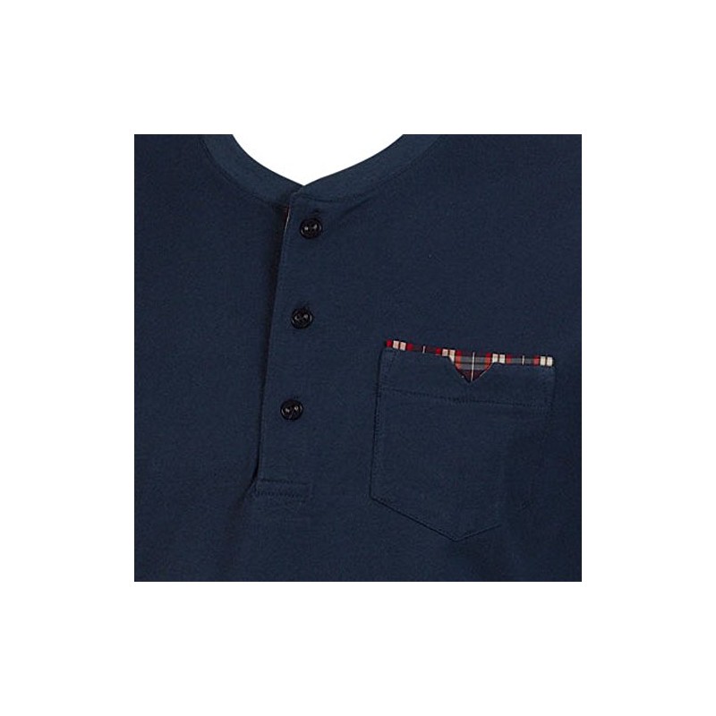 These men's pyjama sets by Walker Reid include a short sleeved plain jersey top with a chest pocket and a pair of full length checked trouser bottoms with an elasticated waist. These PJ sets are made from 100% cotton and are perfect for any season! Available in sizes Medium, Large, Extra Large or XXL. A full list of measurements can be found below: