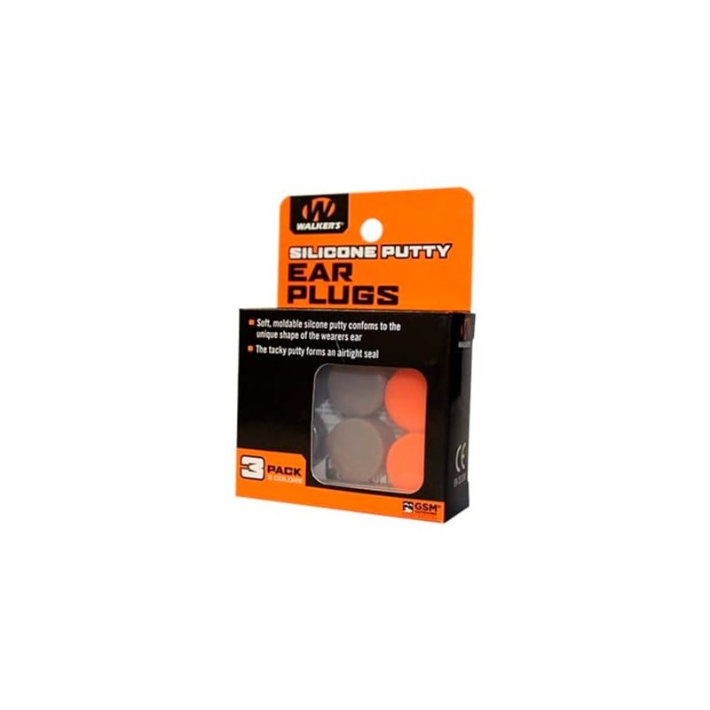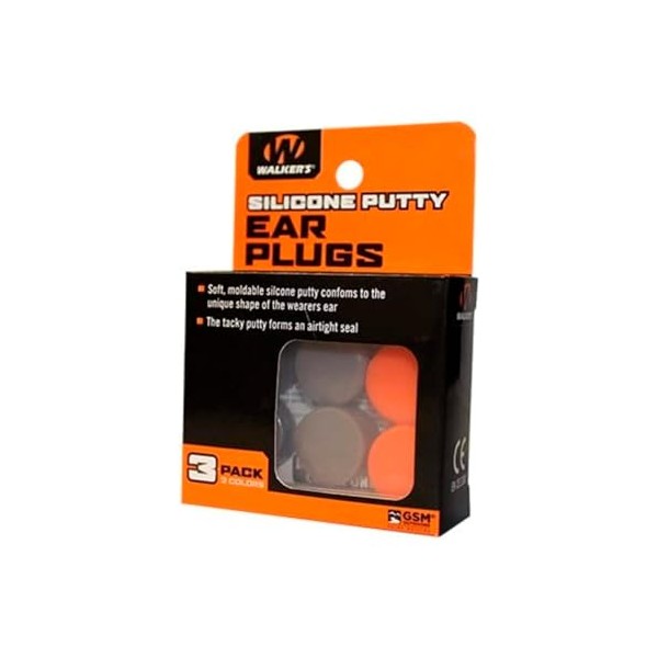 Walker's Silicone Putty - Soft Moldable Tacky Adaptable 20dB NRR Noise-Blocking Hearing Protection Shooting Hunting Work Earplugs, 3 Pairs, Storage Case Included - Orange/Flat Dark Earth
