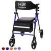 Walkers for Seniors Lightweight with Seat Foldable, Blue Frame 8" Big Wheels Adult Walker for All Terrain, Dual Adjustable Height Rolling Walker Transport 4 Wheel Walker| Royal Blue