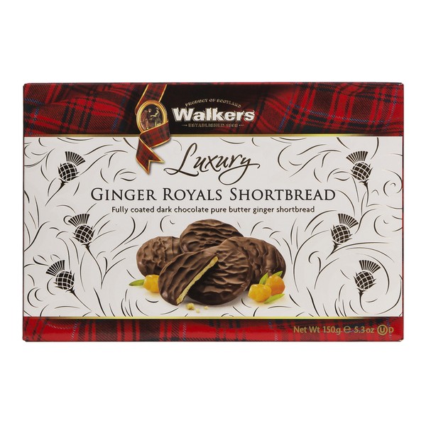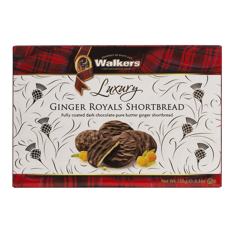 - Ginger Royals are a unique Shortbread, combining the moistness of real stem ginger with the crispness of Walkers traditional pure butter Shortbread and the irresistible taste of dark chocolate