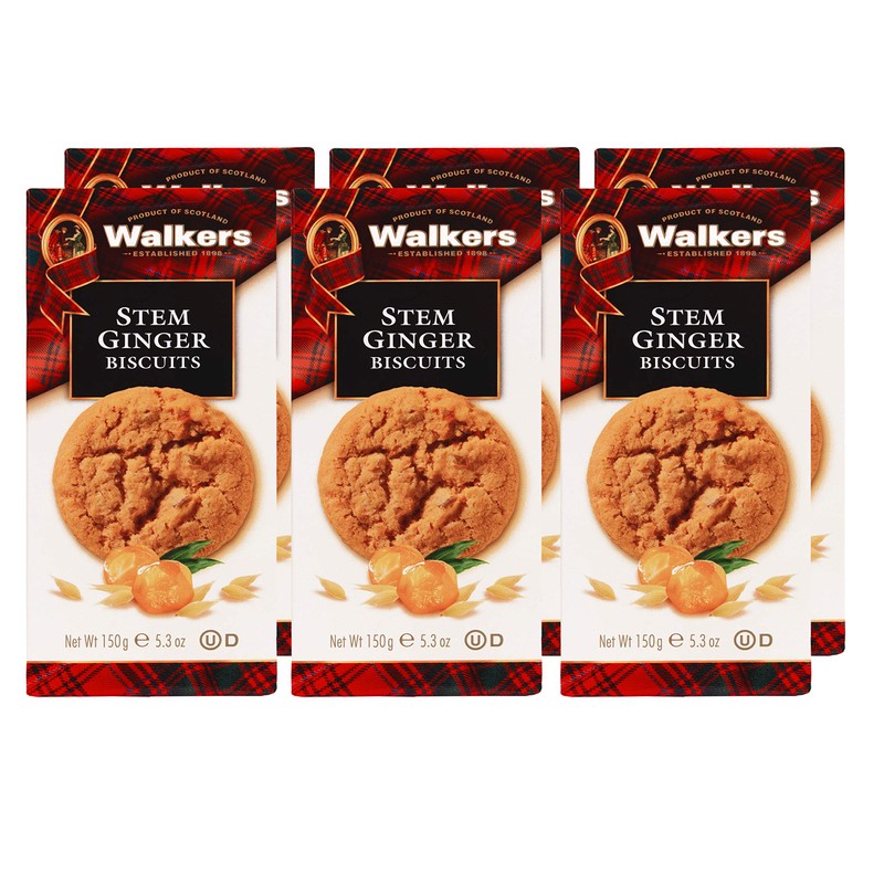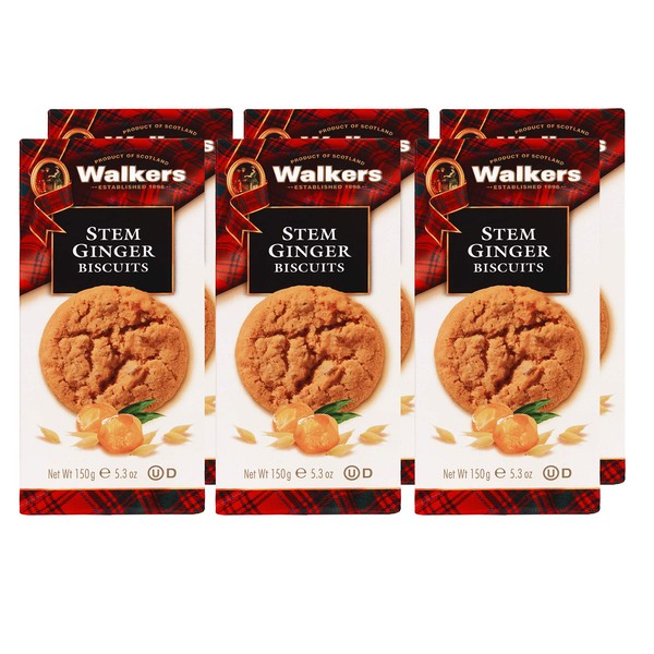 Walker's Shortbread Stem Ginger Biscuits, Scottish Cookies, 5.3 Oz (Pack of 6)