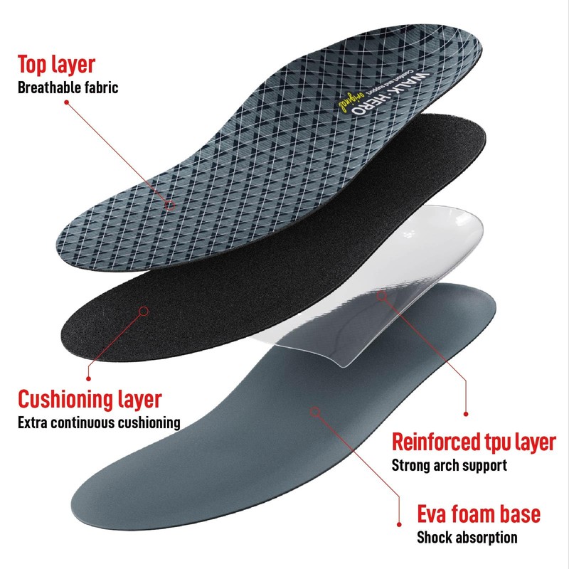 • Foot Pain Relief: If you spend all day on your feet, even the slightest step can cause pain due to overworked arches. Walkhero Oringin insoles can relieve Plantar Fasciitis, Achilles Tendonitis, shin splints, and other foot, ankle, knee, hip & back pain.