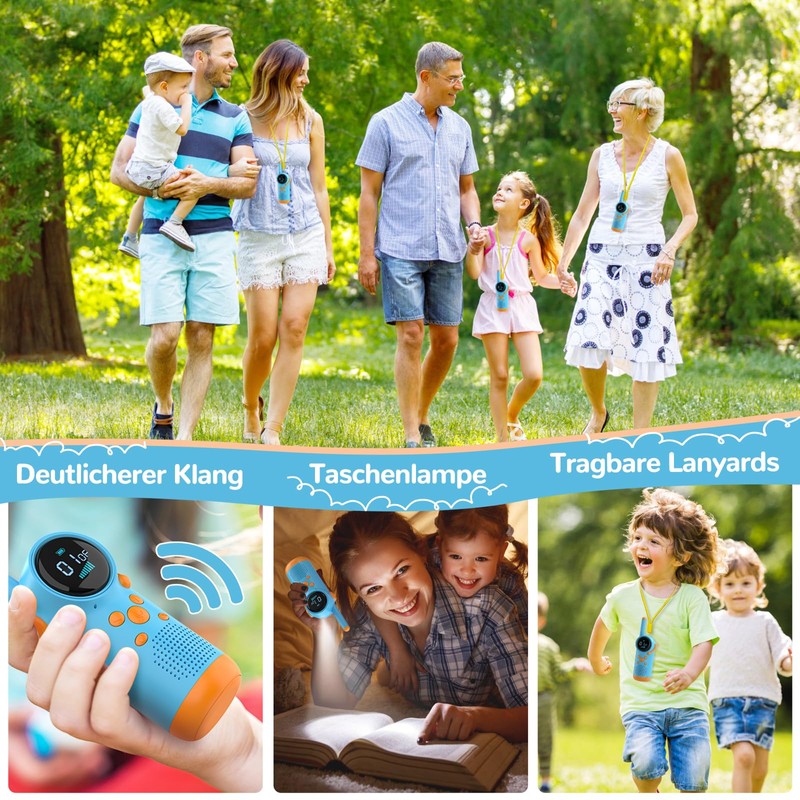 - LED torch and lanyard: the integrated LED torch is particularly helpful for night adventures, emergency situations or dark work environments. Both walky talky children also come with a portable lanyard that children can easily carry on the go. Therefore, this walkie talkie is a perfect gift for 3-12 children for birthdays, Christmas, children's day and so on.