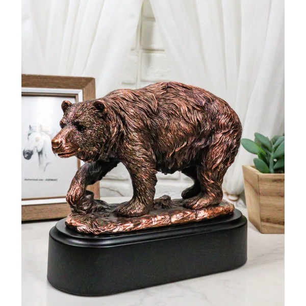 Walking Bear Statue - Bronze Electroplated 7"L Figurine Wild Life Jungle